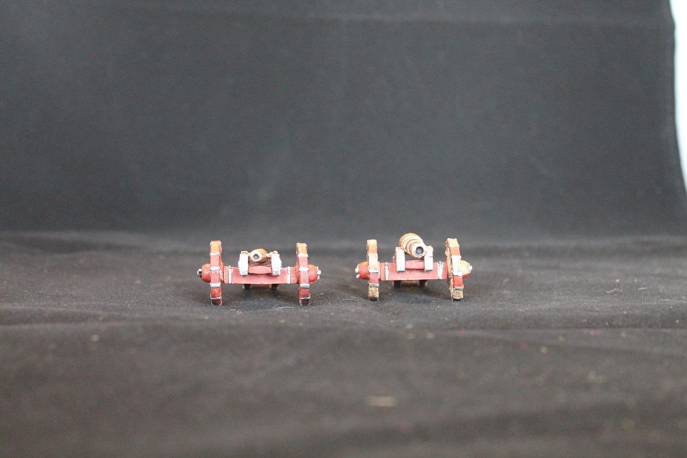The guns themselves are fairly standard. The castings are not as crisp as they could be, which really only shows up on the carriages. The barrels are very nice, especially the larger one.