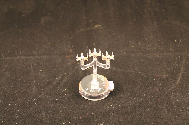 These photos really didn't come out well. They are from yellow squadron. I'm not thrilled with the job I did on them, which is why they are not red squadron. I did learn some things about painting models this small which should make the rest go better. These are probably 3mm models.