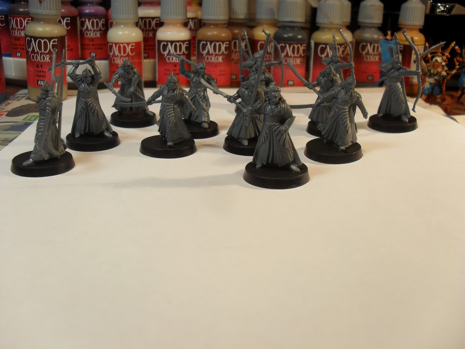 I'm still pondering colors for these. The two contingents will be different but the bases will tie them in together. High Elves first, I think.