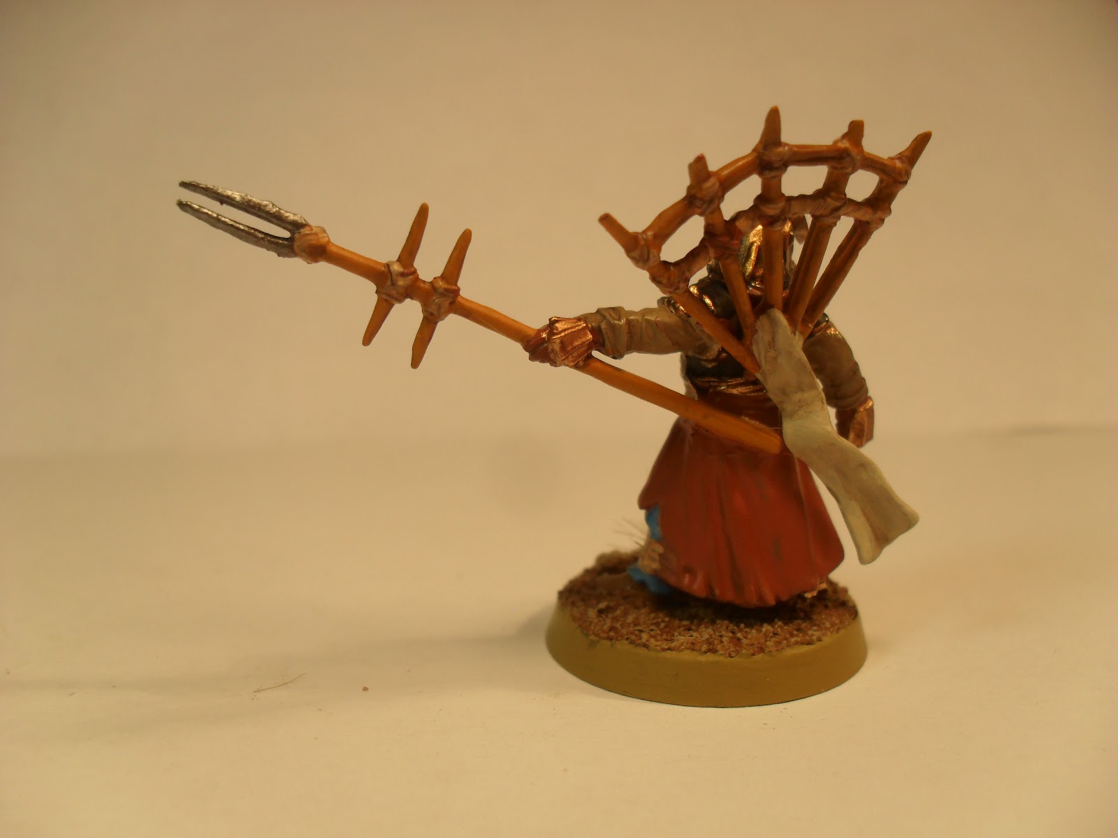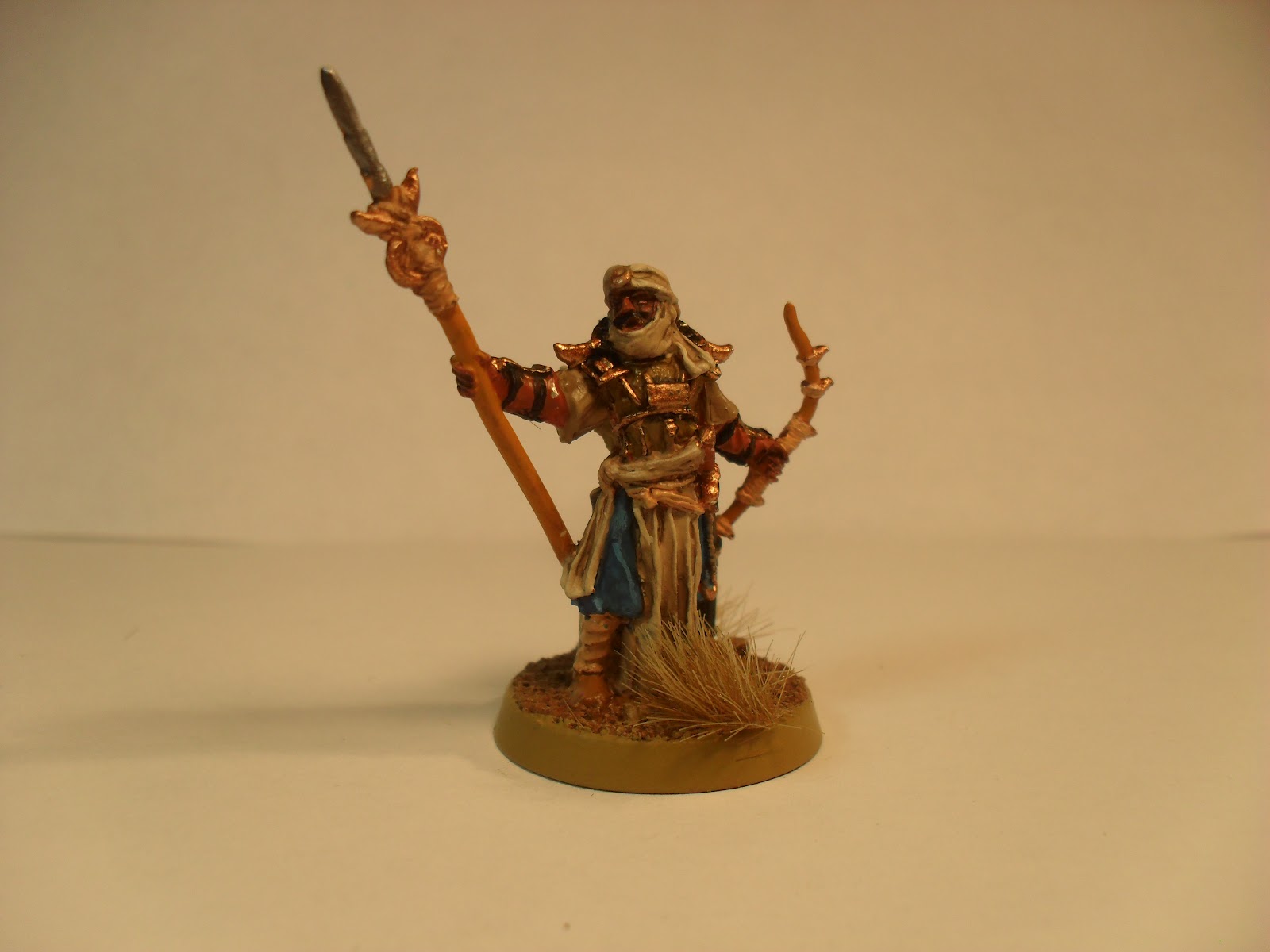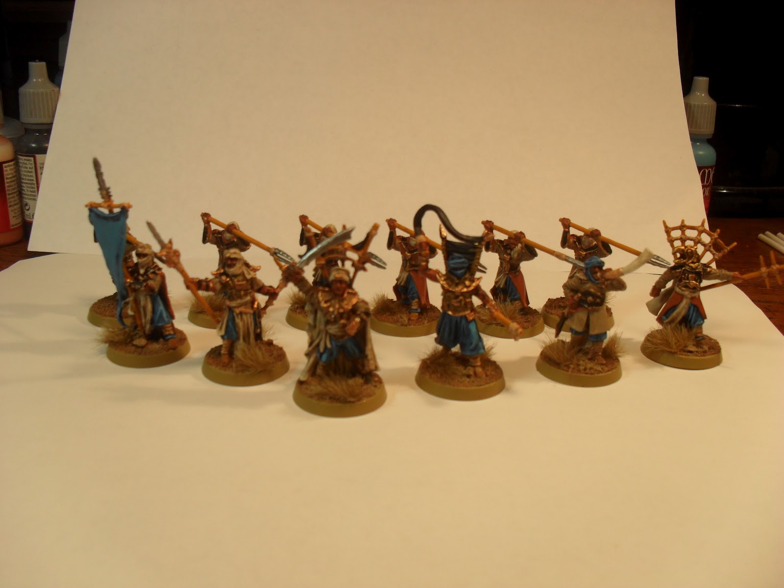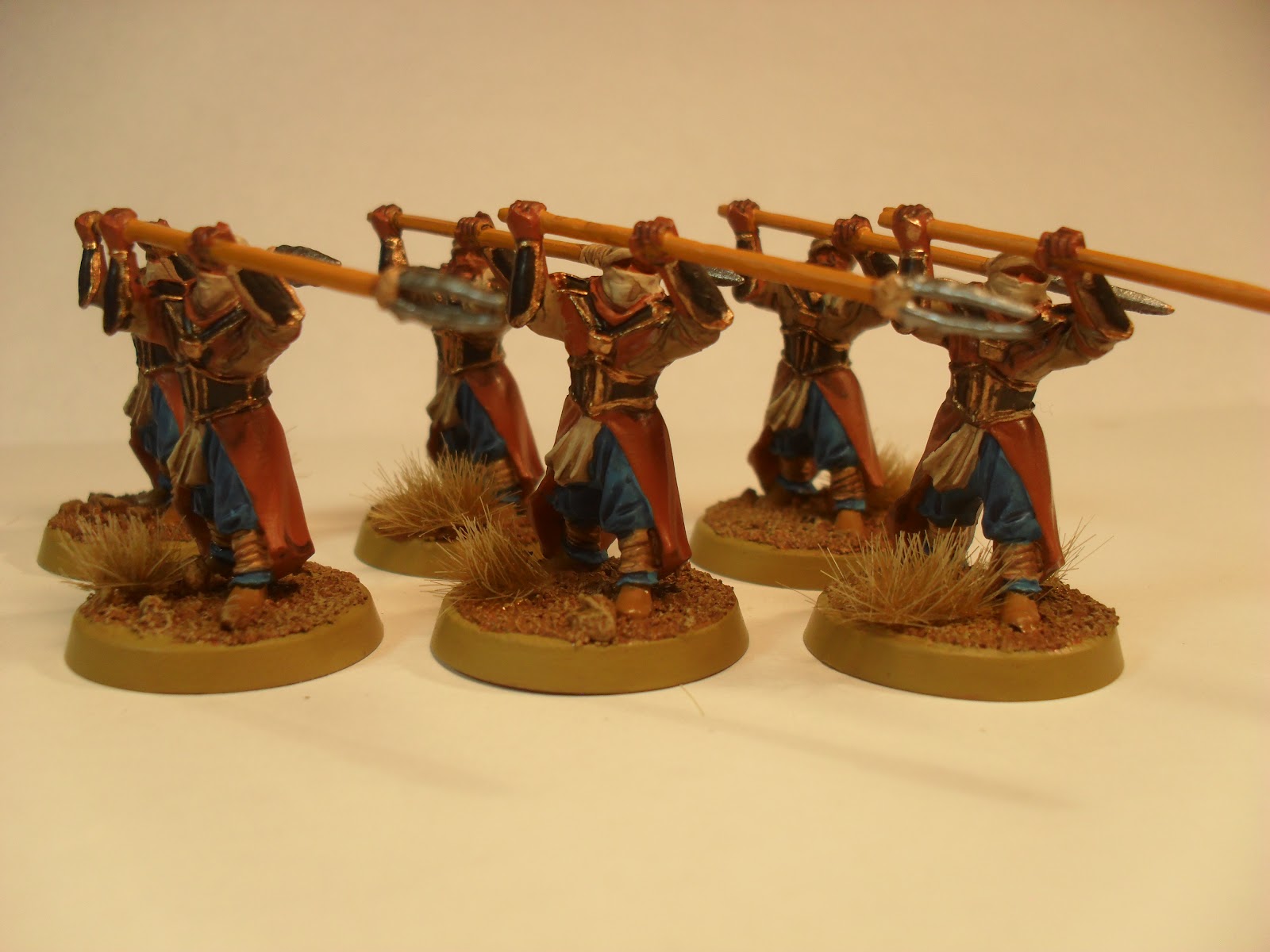 I've been wrapping up my Haradrim army this month. I don't think I'm going to make my goal of twenty painted models for March, but I'm really quite pleased with how these came out. It's another twelve models. Six Warriors with spears and then all of the heroes and specials. I'll get my Betrayer painted up, to use instead of the generic Nazgul model I have been using, but that should be it on this army. It's going to be used by the Traveller, while he decides if he is going to invest in the game or not. I lent him the Fallen Realms army book so he can start making his own lists, instead of using mine. If he chooses models that I don't have painted then I'll be re-visiting this army. I suspect that Suladan may get painted in the next couple of weeks, for example.