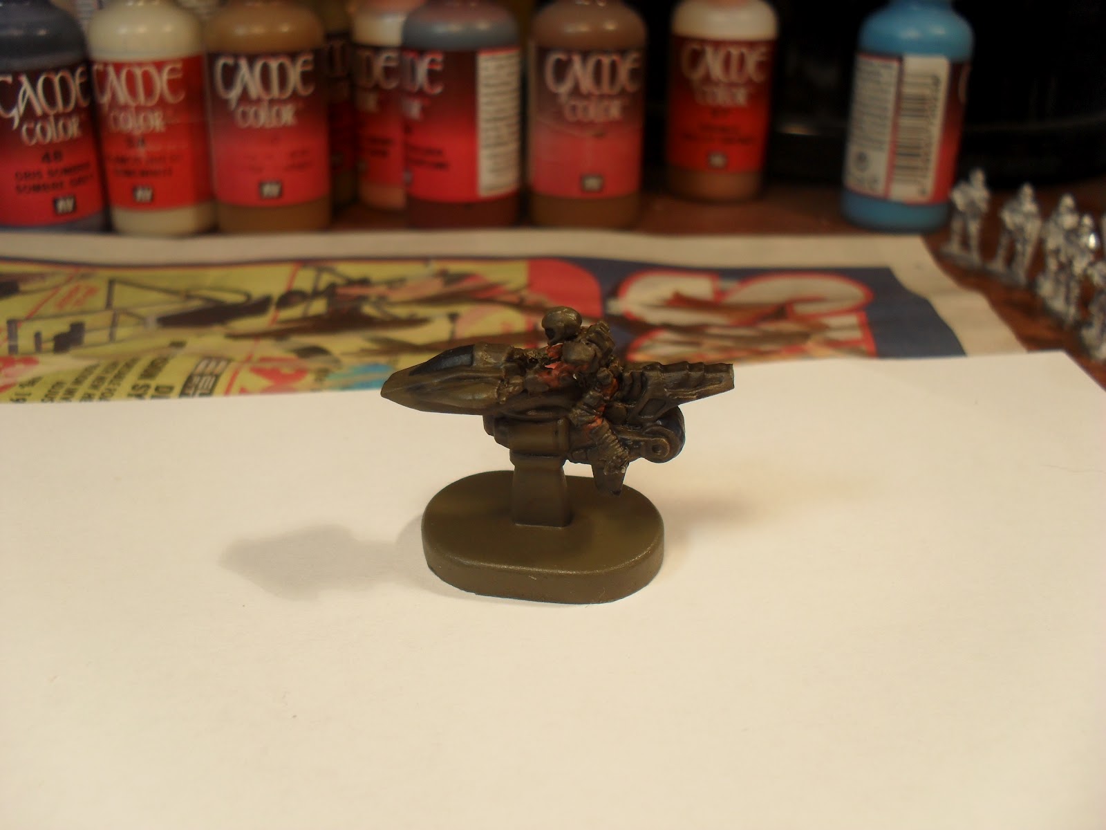 I was so taken with the CMG models that I just had to get some paint on them and see how they looked. I am going to be basing the infantry on washers. That will allow me to transport them with magnets. I don't have any washers of the appropriate size so I was not able to get them based and, therefore, basecoated. The grav scout and the bike, on the other hand, were ready to go.