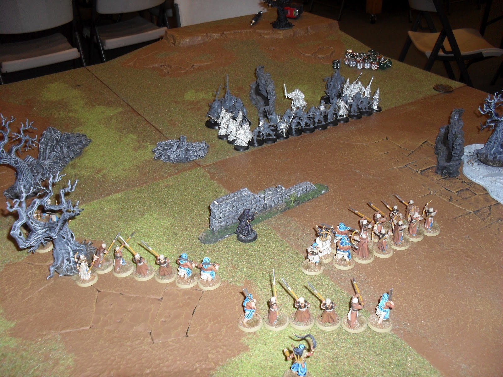 This game also crystallized something for me about my army. It just doesn't work right with the new deployments for warbands. It is rarely possible to get all of the archers within range of the Betrayer to benefit from his better poison rerolls. When you couple that with the fact that he is one of the worst Nazgul, from a spell casting standpoint, and the number of points spent upgrading the archers to be Kharna archers, the army is just too fragile and has too low a model count.