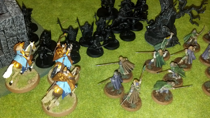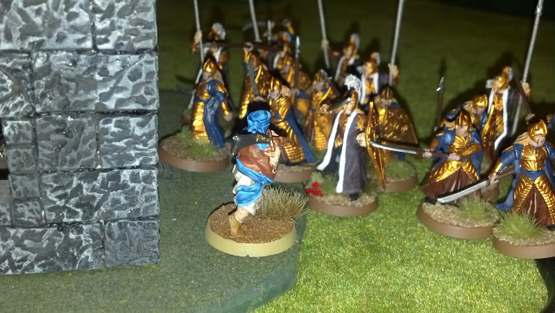 The combined forces of Harad and Umbar marched north towards Mirkwood. Several days from the forest, passing through long abandoned farm lands, Nuradan's scouts advised him that there was a force of Mirkwood elves and Galadrim closing on him. The Southrons made for a farmhouse, planning to use it as a fortified base, hoping to negate the Elvish shooting.