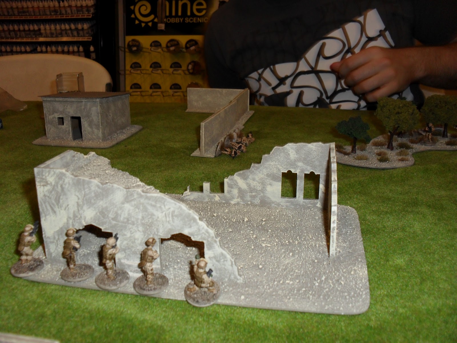 ReplyDeleteNick's models look great and he has built some fantastic terrain for it. We only used a little bit of it, and not his table.