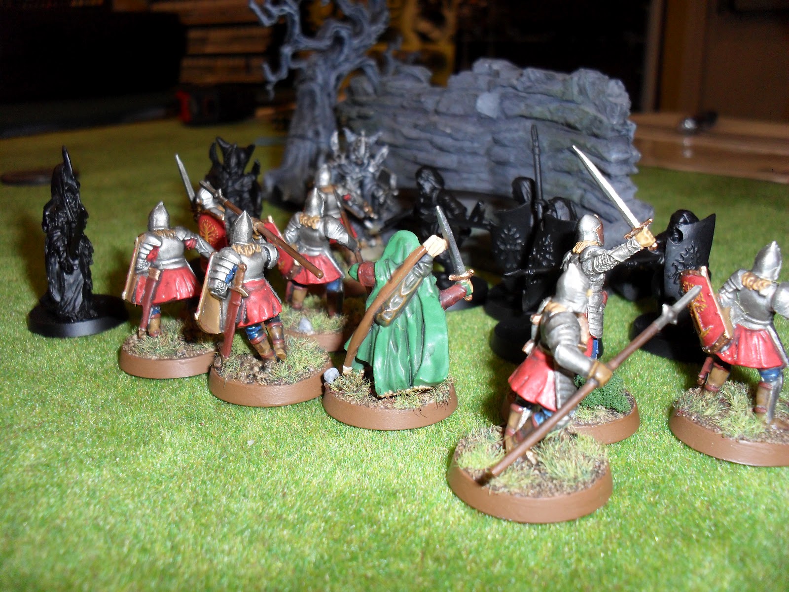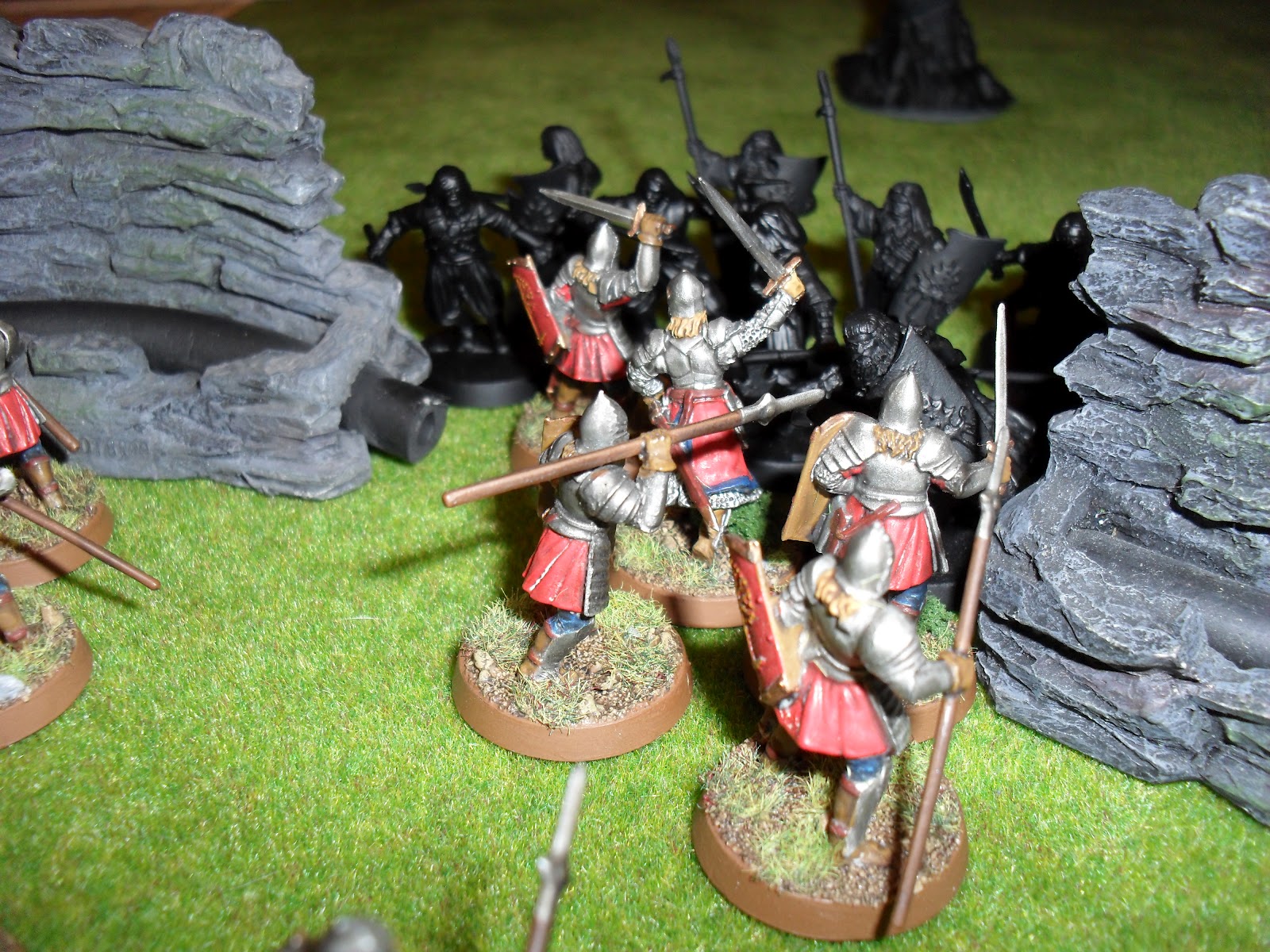 Faramir led his veterans forward to guard the center and left flank. The right was under the command of the suicidally brave Cirion. The rangers, under Damrod's command would be coming in on the Corsair's left flank. Faramirs' immediate goal was to reach a gap in the stone cliff that would allow him to hold off the larger number of corsairs while still leaving him with sufficient strength to hold the left flank.