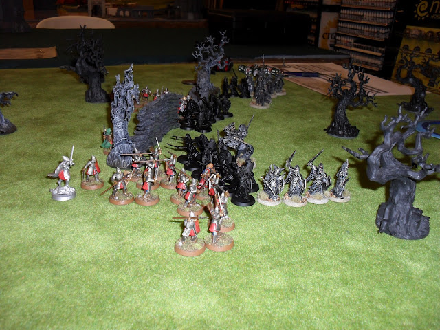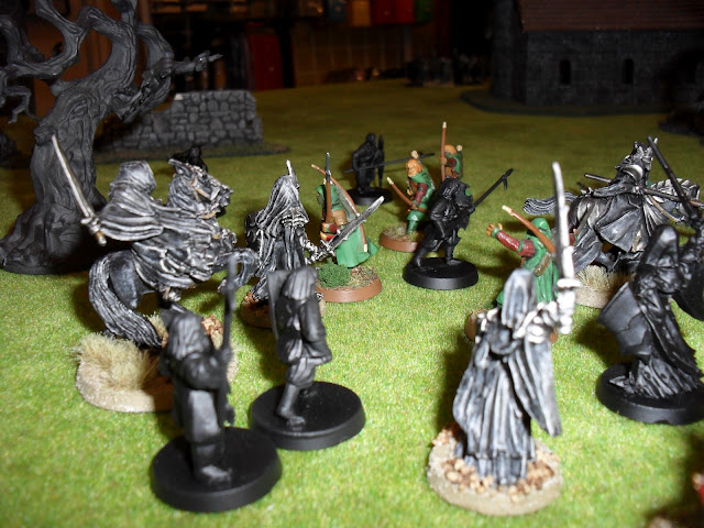 All was going according to plan until the right, under Cirion, made contact. For some reason the troops there were unable to defend themselves and started to drop like flies. The Nazgul was keeping the shooting of the rangers from being too effective, but the veterans just could not seem to make a dent in their lightly armored opponents.