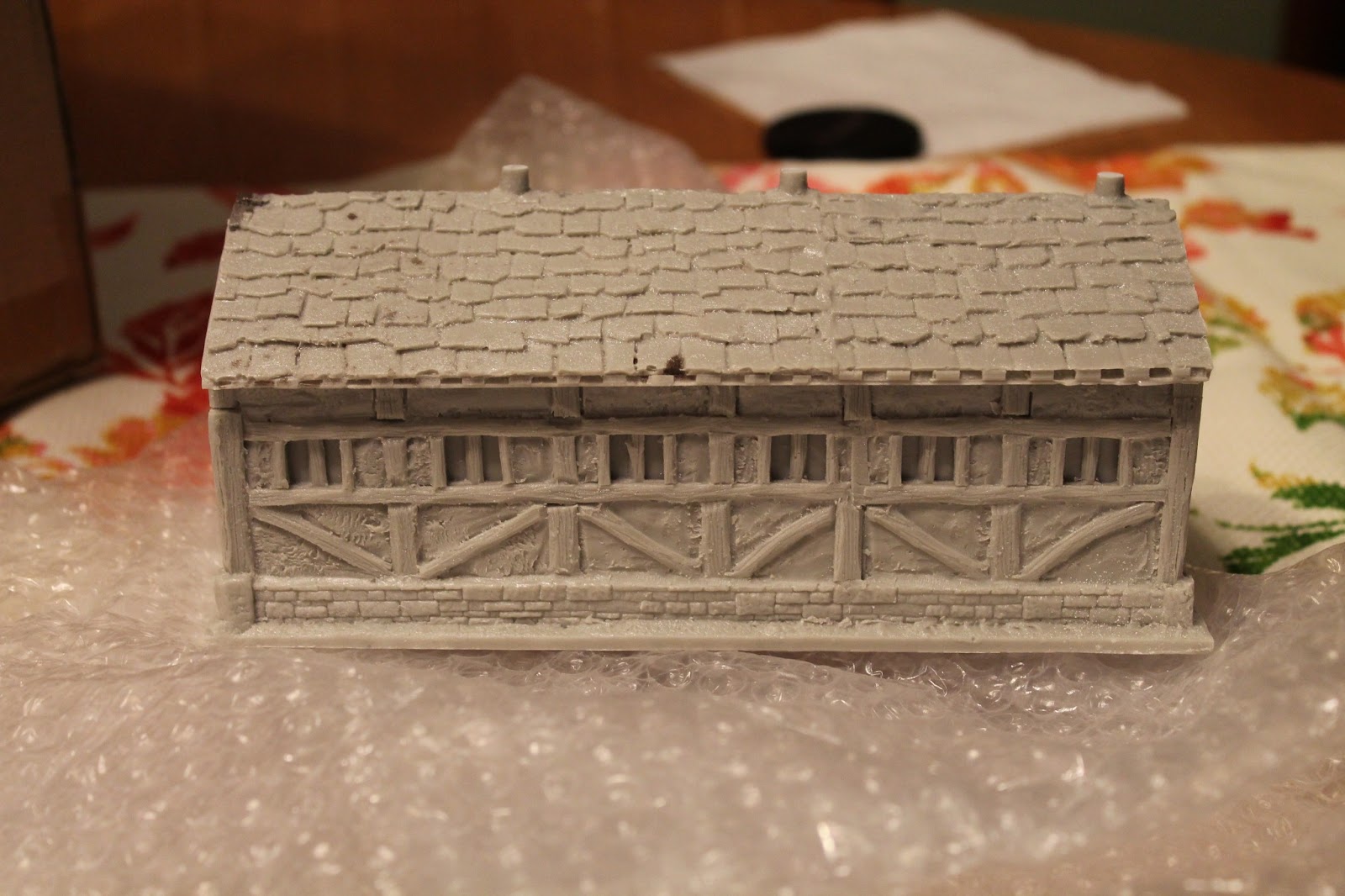 The piece I ordered is the image at the top, the Roman barracks. It arrived quickly, considering the customary customs delay. The box was small but brilliantly packed. Foam all around. Plastic peanuts filling the voids. Four layers of bubble wrap around the building itself. This package could have gotten destroyed but only if a truck drove over it.