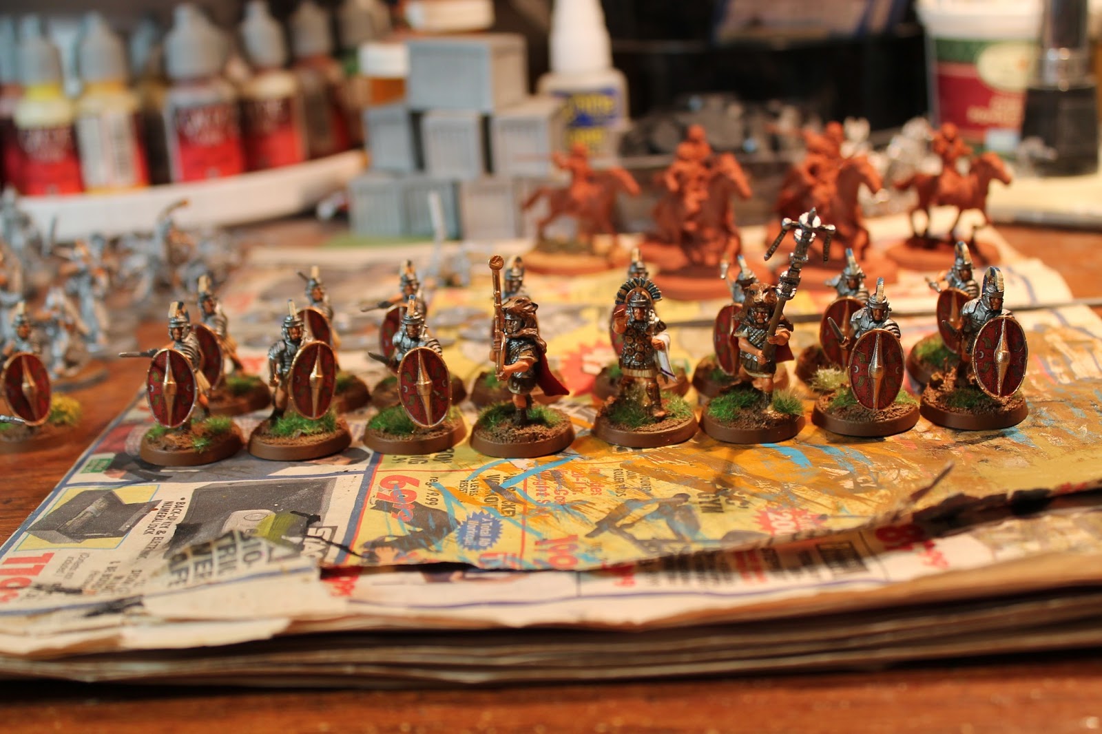 That gave me two fully painted divisions for Hail Caesar, though at minimum size. I did not get the command bases done. I also need to get the movement trays textured and decorated, since I think they detract from the appearance of the units to a surprising degree.