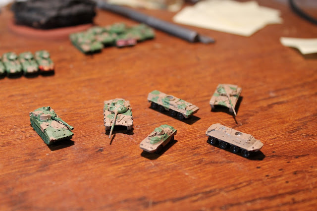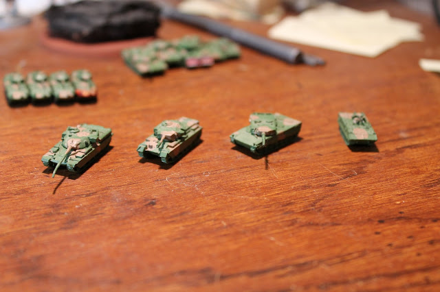 I went with a simple scheme, green with brown for NATO and brown with green for Warsaw Pact.