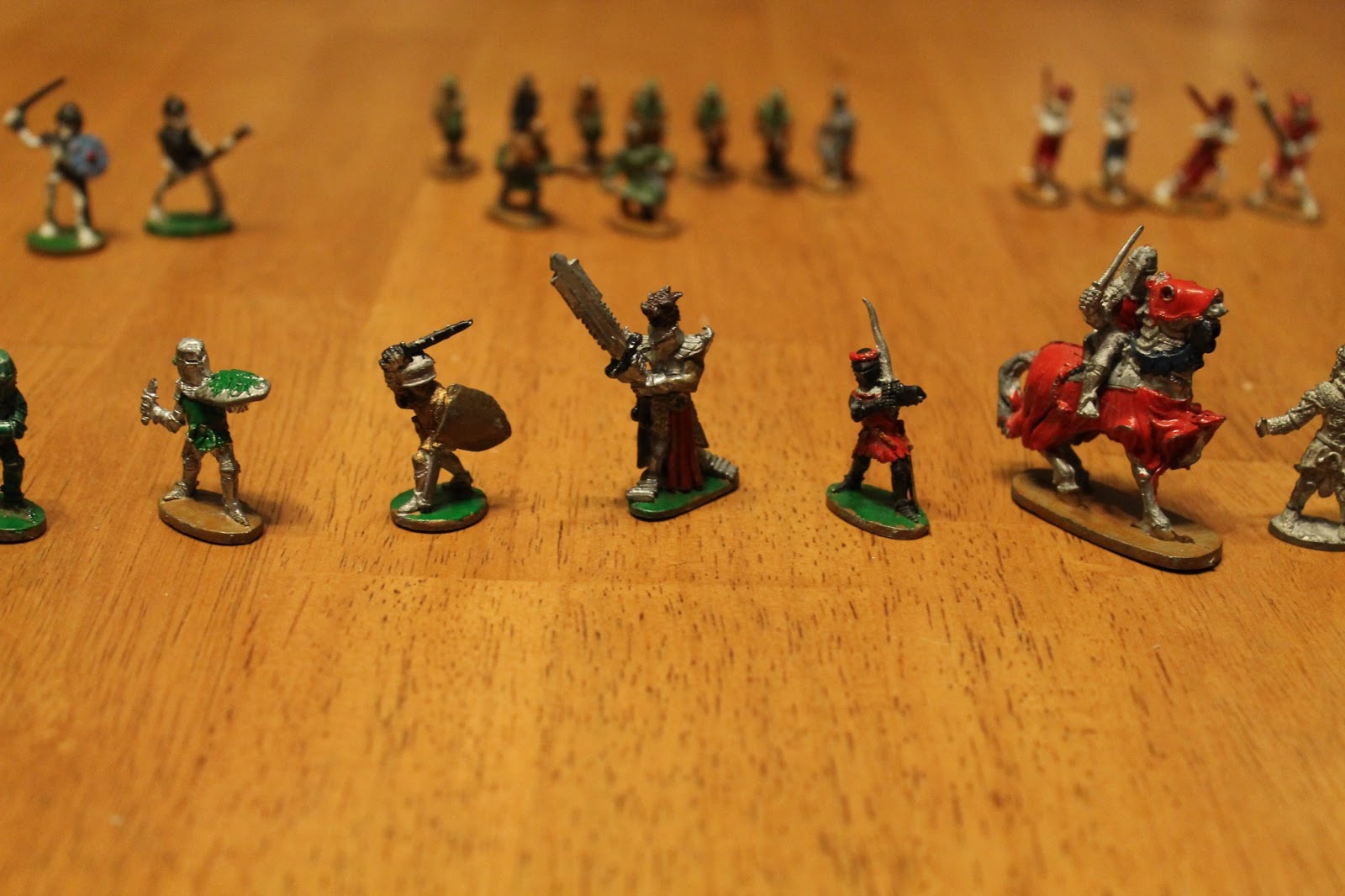 DeleteThose guys in the second picture are from Grenadier (1983). They were in a box set called "Knights, Fighters, and Men At Arms" from their Fantasy Lords line. I got my set at roughly the same point in my painting development (i.e. when I started putting more than one color on a mini). Nice bit of nostalgia. (Interestingly, my version of the knight on the right is also missing his weapon--a hand axe, iirc.)