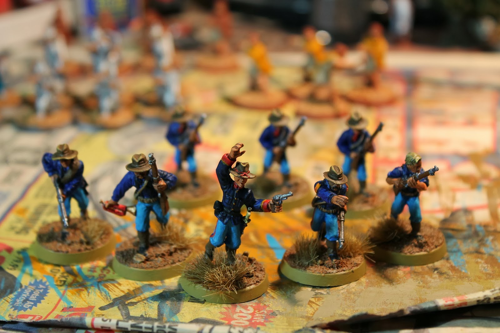 These four models are, from left to right, Rocky (marksman), Andy O'Leary (melee), un-named private #1 and un-named private #2. They'll get names if they earn 'em. Until then they are red shirts (Star Trek reference).