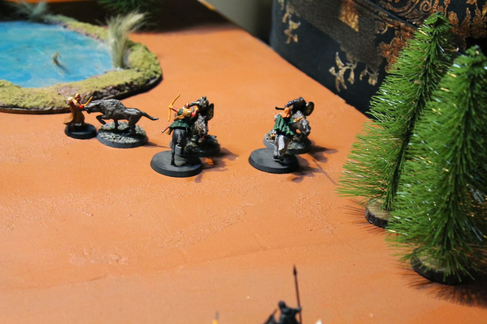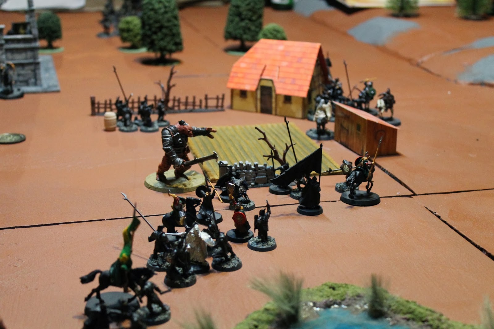 In the end Eomer bounced and was killed, along with his guards. The lone Outrider shot the troll in the face twice but couldn't get a third hit to kill it. Saruman managed to use his power just right to hold me off of the center objective. Huntsman took the game on points. As always with this sort of game, if I'd had one more turn it would have been mine. I didn't play the scenario as well as Huntsman and it cost me in the end. I'd happily play more losses like that though. This was a great game.