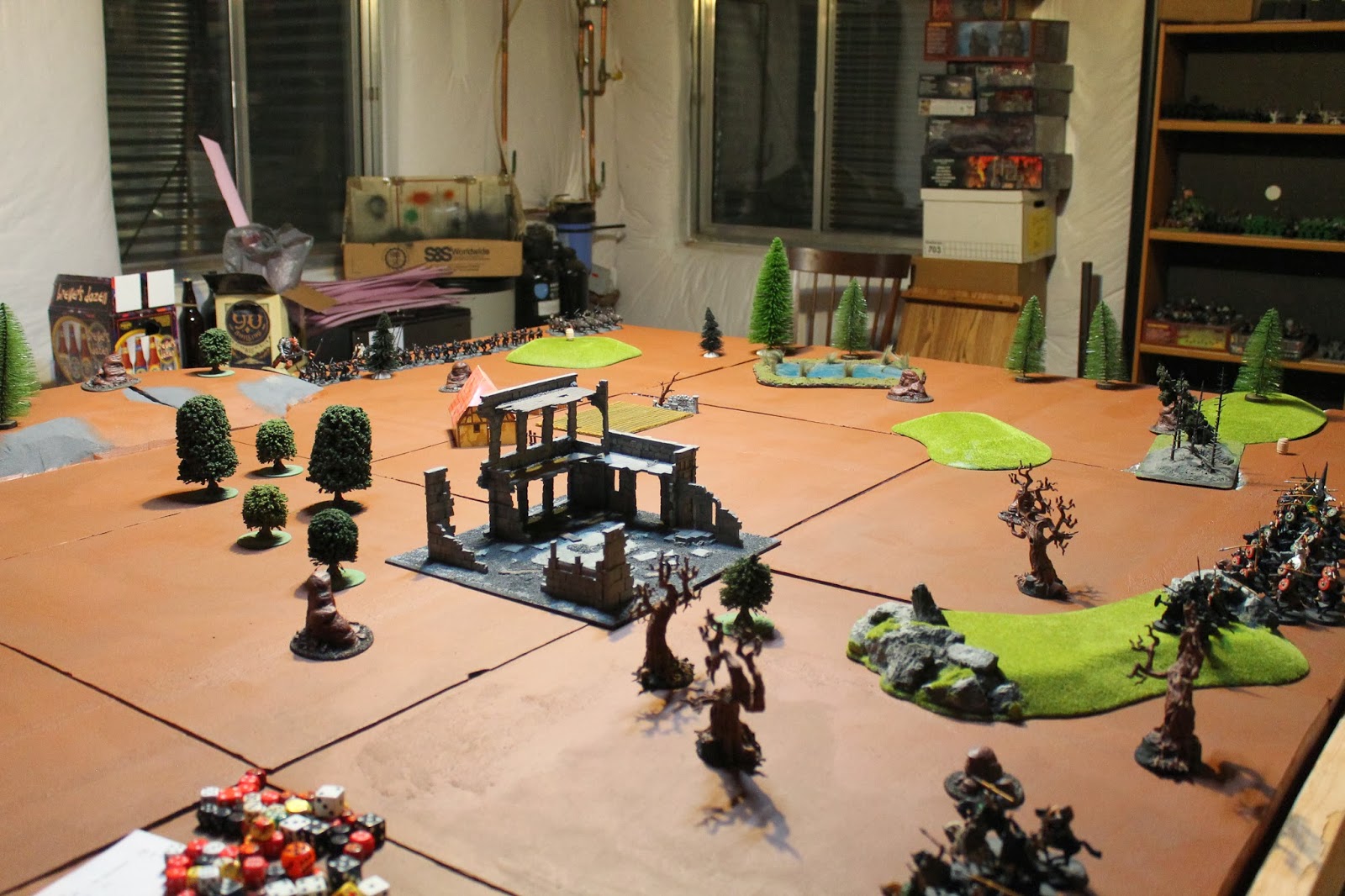 This was the first game on my new table, though as you can see in the pictures I still have some work to do on these tiles. I'm hoping to have some free time to actually throw against it this weekend. I'd like to get it drybrushed and the edges of the tiles Gorilla taped.