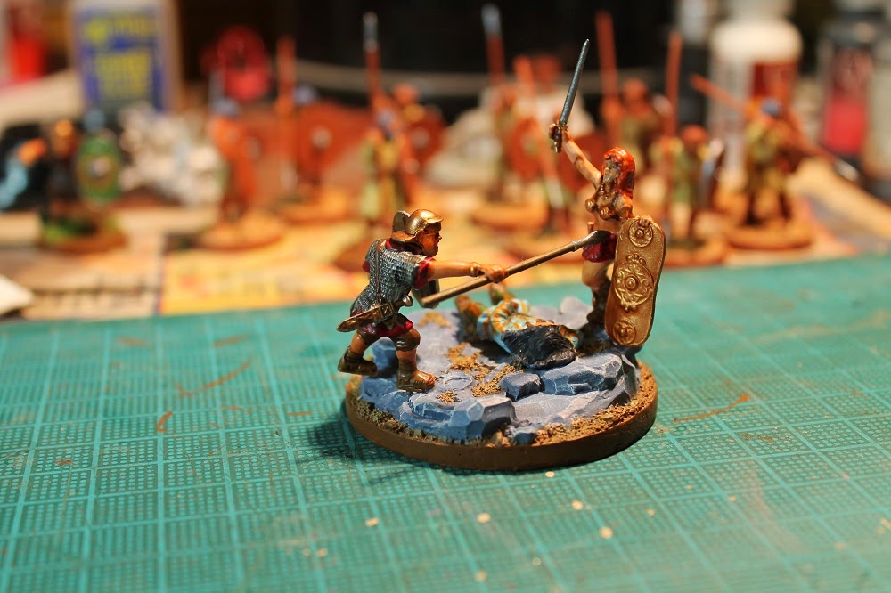 Boudicca being done in by a Roman auxiliary all in 28mm. Boudicca’s