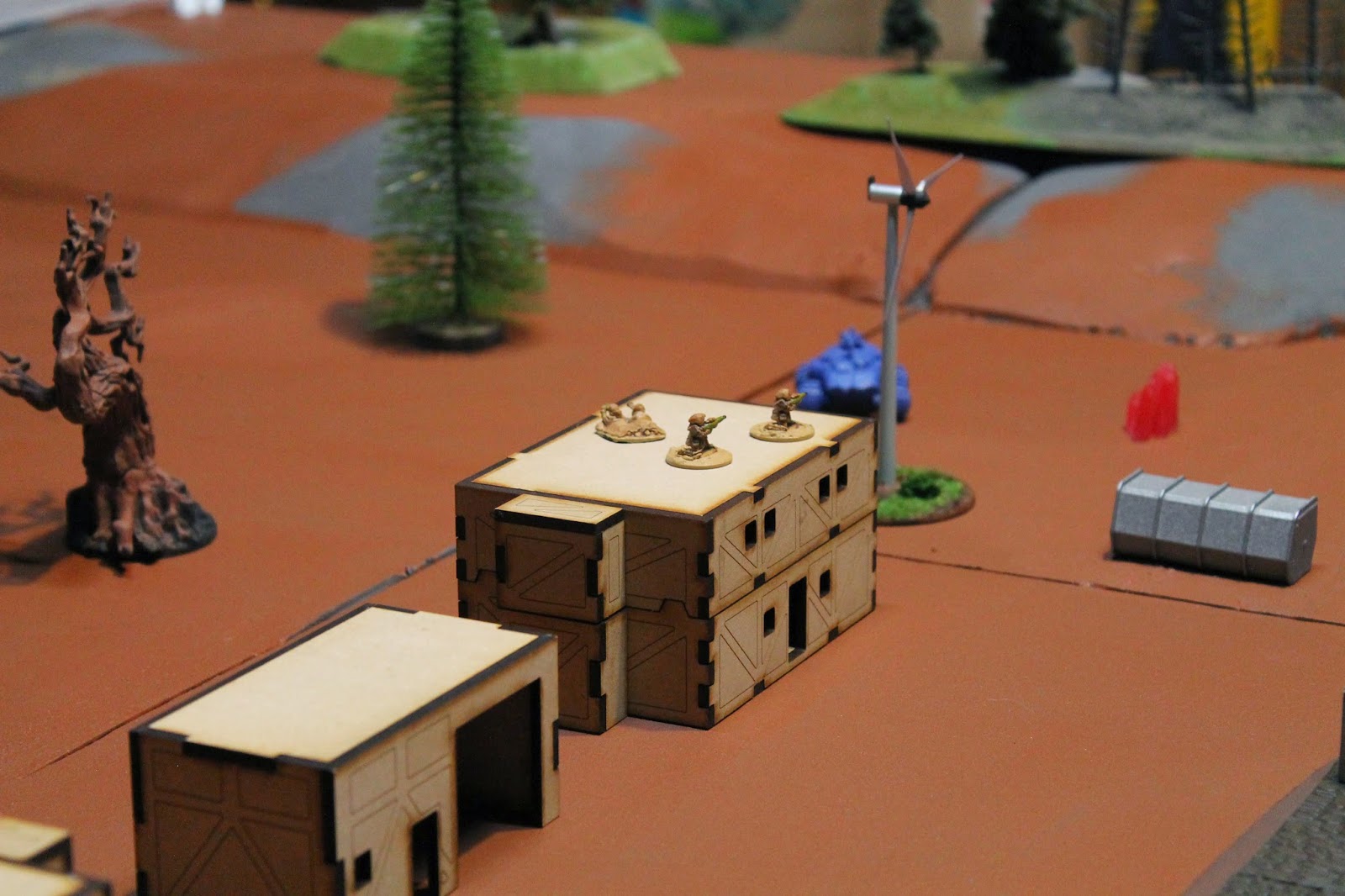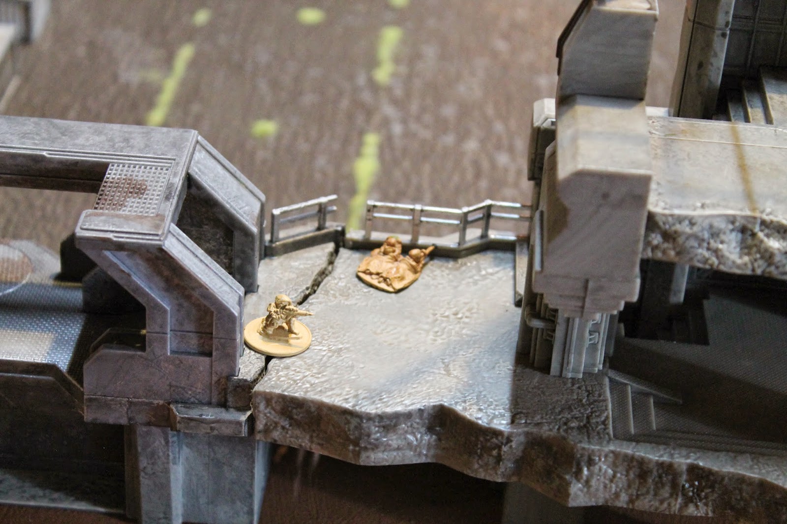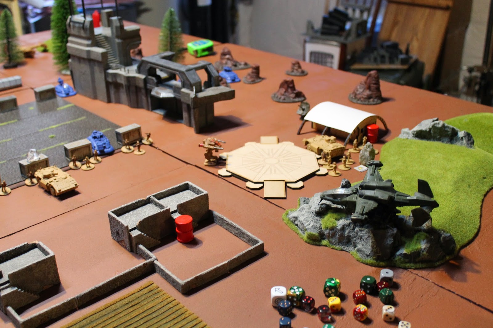 The Traveller deployed a bunch of his infantry at his jump offs and it did not pay off. Infantry in the open is meat on the table in this game. This is why we need smoke. It's the only chance you have to move infantry forward without an APC. This table had quite a bit of cover but not enough for maneuver. There's no way anyone could have gotten across that parade deck without smoke.