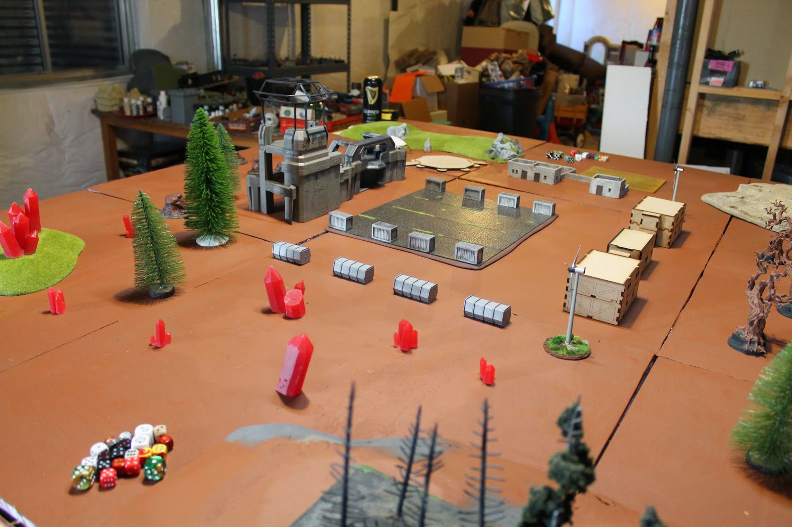 The tank totally dominated everything it could see. As it should. The APCs could survive one hit, but not two. It shrugged off infantry missiles, a plasma blast from a light mech and gatling fire from the drop ship. It killed the scout car with one shot, very cinematic. I'll have to get one of my tanks on the table for the next game. I'm also considering my options for tank destroyers. Both of us felt the pain of our dropships being slick troop carriers rather than gunships. I'll be modifying at least one of the Falcons into a gunship. I'll also have to pick up the gunship version of the Sabre from Rebel.
