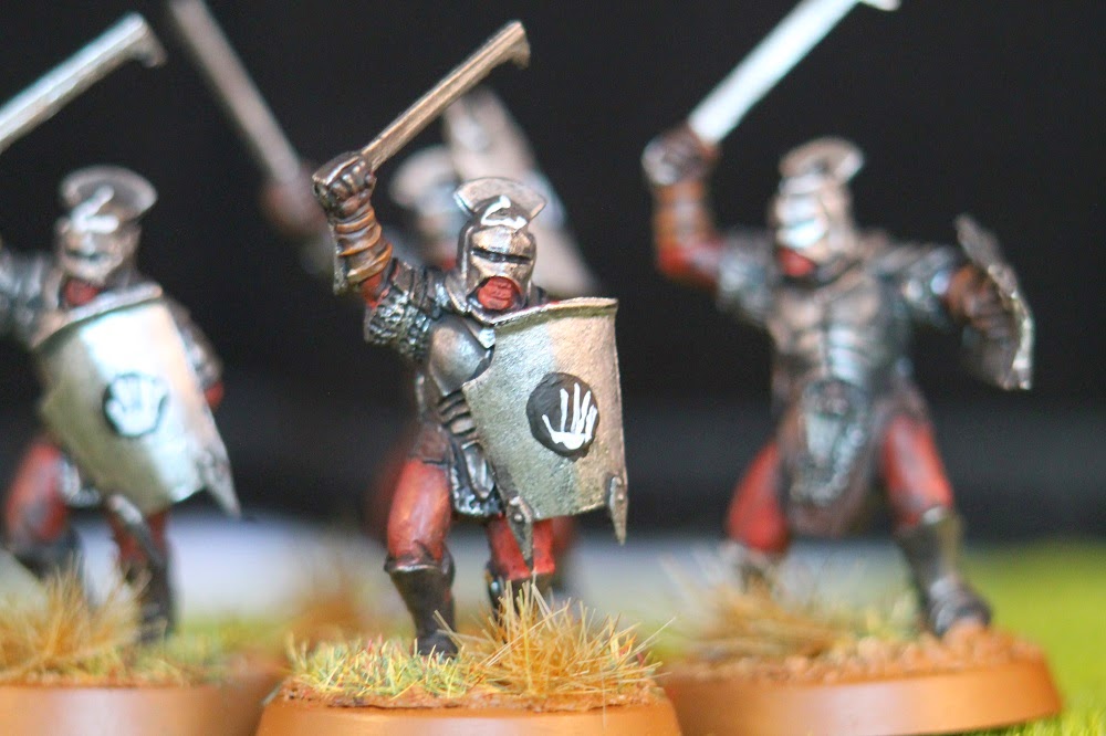 These are 28mm plastics from Games Workshop. They are, in common with most of the LOtR plastics, mixed quality. They have great detail in some spots and then meld into featureless blobs in others.