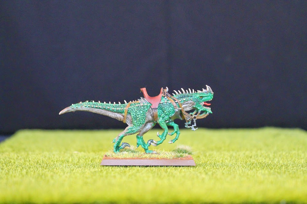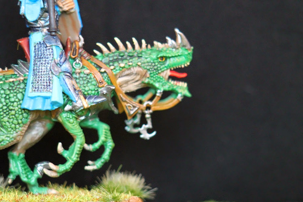 together made me think of a Dark Elf Cold One Knight. The model is one of