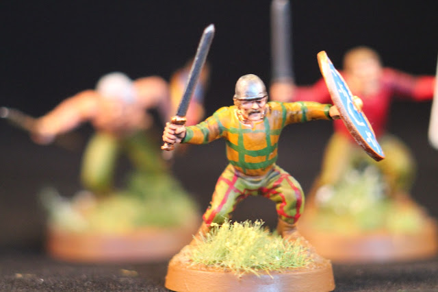 The metal models are nice, though the face on the right hand guy is a little rough. The three models in this set have a lot of character, and are all different enough to keep them interesting. These three will be champions for individual units in Hail Caesar or heroes in Lord of the Rings Ancients.