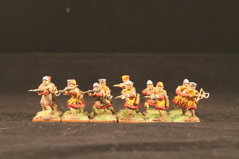 The next unit is twelve crossbows. Again, the models are very versatile. These are the same box set as the spearmen I painted for last year's challenge. This gives me three units for Lion Rampant. Once I add some bows, a couple of mounted units and some bidowers I'll be done.
