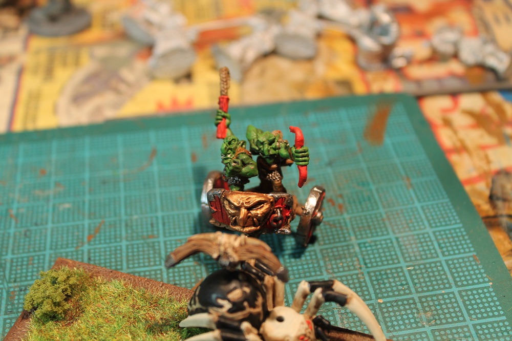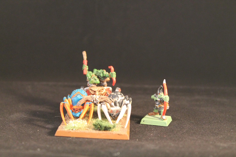 The goblins were simple but great to paint. They just have so much character in their faces; malice and glee at hurtling at the enemy behind a couple of giant spiders.