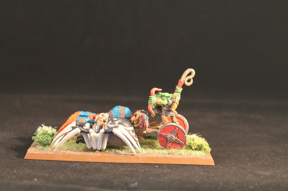 There were some great sculpts back in the past of Warhammer. Characterful, eccentric and fun. I found this goblin chariot on E-Bay last year. It didn't have its wolves, but I have a LOT of spider riders.