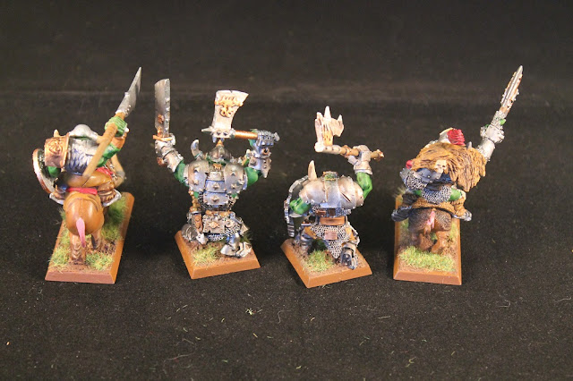 These four are two mounted and two foot Bosses. The one on the left is the plastic hero kit. The detail leaves a lot to be desired, especially next to the three metal models.