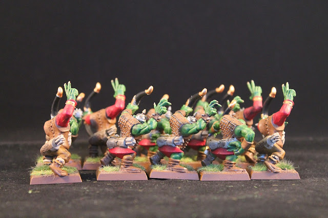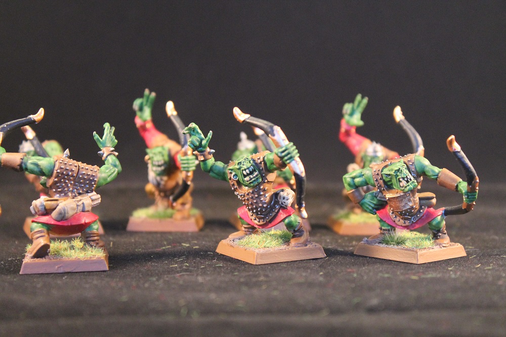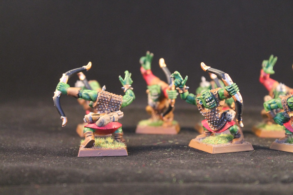 This entry is twenty Warhammer Orcs from Games Workshop. These were some of the first models I bought. In fact the archers were in the starter set which was the very first model set I got. They are finally painted.