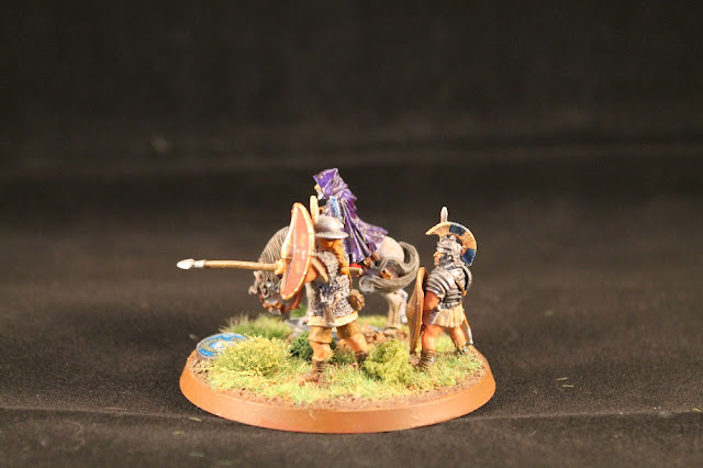 The shield on the ground is from the Warlord auxiliary cavalry box. They were really badly cast models. I'll never buy another box of that set. For some reason I had one shield left over so it found a home here.