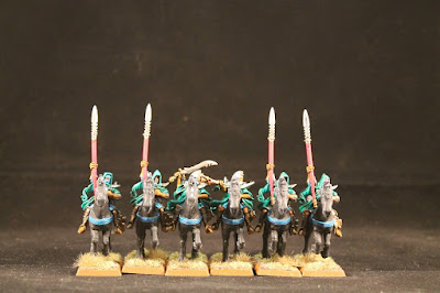 This entry is six Dark Elf dark riders from GW. These are the older metals, from just before the current plastics. I think I have another twelve of these, perhaps more.