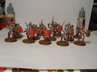 I complete eight spear & shield armed WoMT tonight. All I have left is my horn blower and a single WoMT who will be armed with a sword and board but is currently broken.