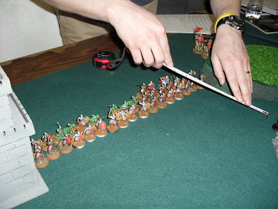 Here is my battle line awaiting the Dwarfs as my Rangers duel with his.