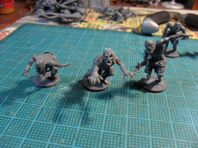 Several months back I bought twenty random Mantic sprues for 20 quid. A couple of months later I supported the Mantic Kickstarter campaign, and walked away with an undead starter army, which arrived last week. Four of the sprues, out of my 20, were for undead. The first one I assembled was the six zombies, for no more reason than, hello, they're zombies!