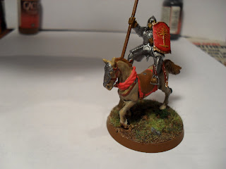 The Knights of Minas Tirith do not come with handy pegs and holes to keep them on their horses. I do not like to glue my mounted troops to their mounts as this makes them much more difficult to transport.