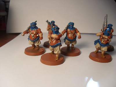 I've been nervous about these guys because I'm still not sure how I'm going to do their flesh. They are going to be dark skinned, but I have to play with it and figure out the recipe. Since these guys have so much flesh on them, they will show any mistakes the most. For now I got around that by just leaving them the basecoat color.