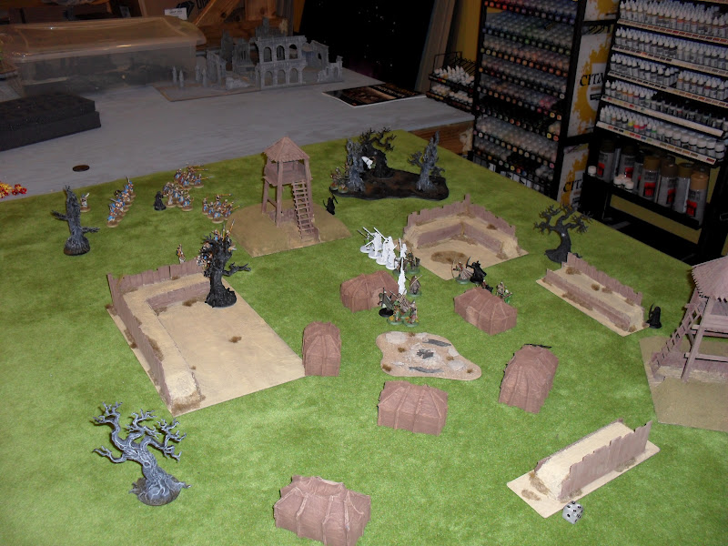 | I'm on the left with the Easterlings, and some rangers, opposite me. I parked in the ruins for most of the game. |